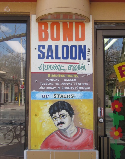One of the pleasures of looking at Toronto signs is that there are so many in more than one language to discover. Here’s one in English and Tamil for a hair salon.