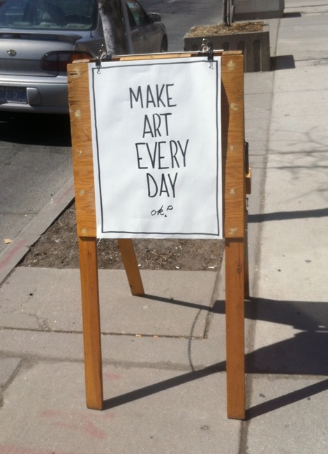Here’s a sign that makes a grand call to action. I like the way “Make Art Every Day” is followed by a little “ok?”. It’s asking you to agree to something rather ambitious.