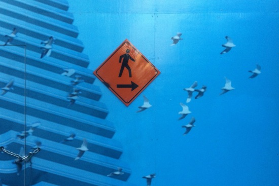 One of the things I like about this pictogram sign is its artful placement on a hoarding at a condo site. A walking figure joins a flock of birds.